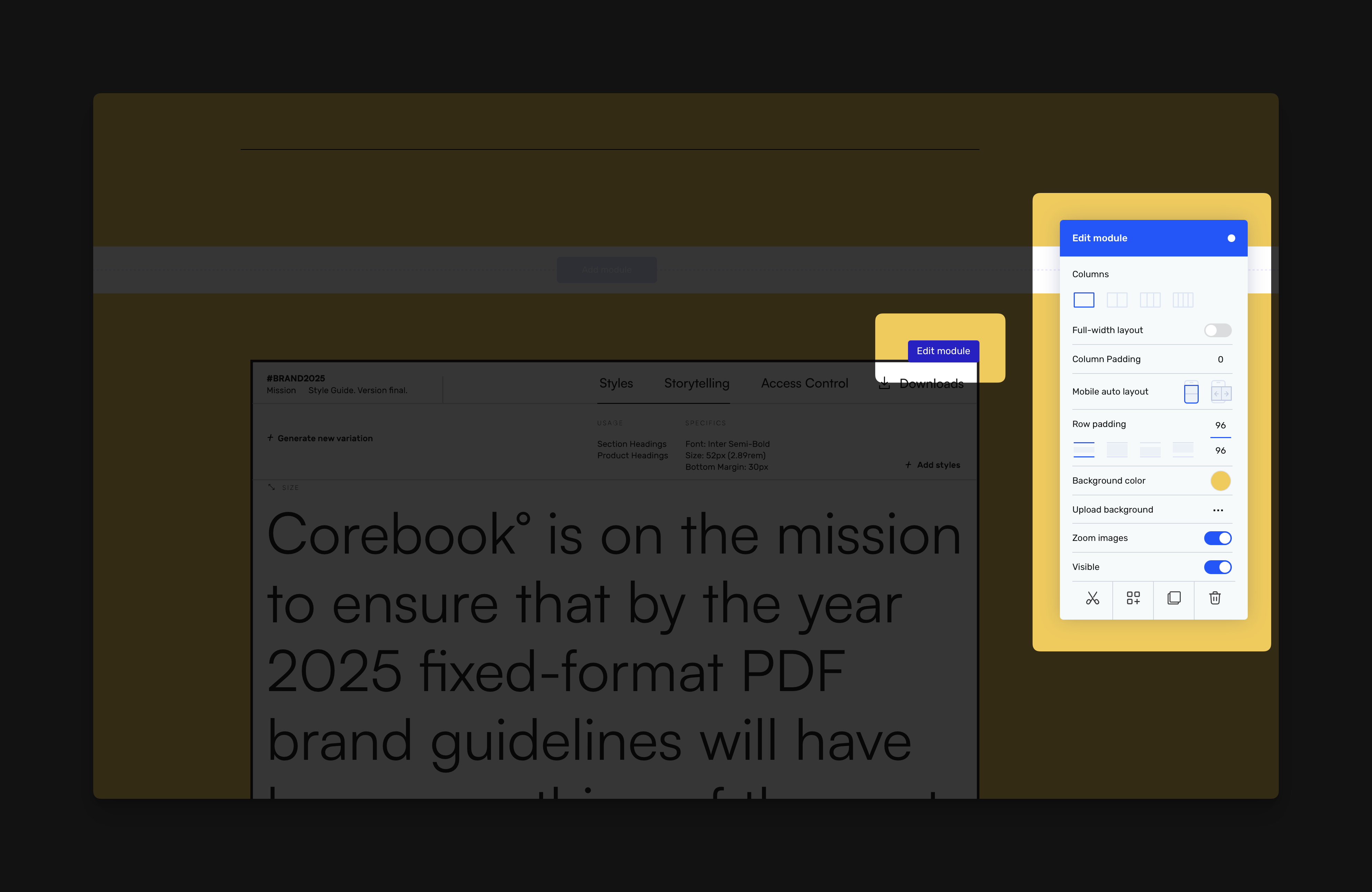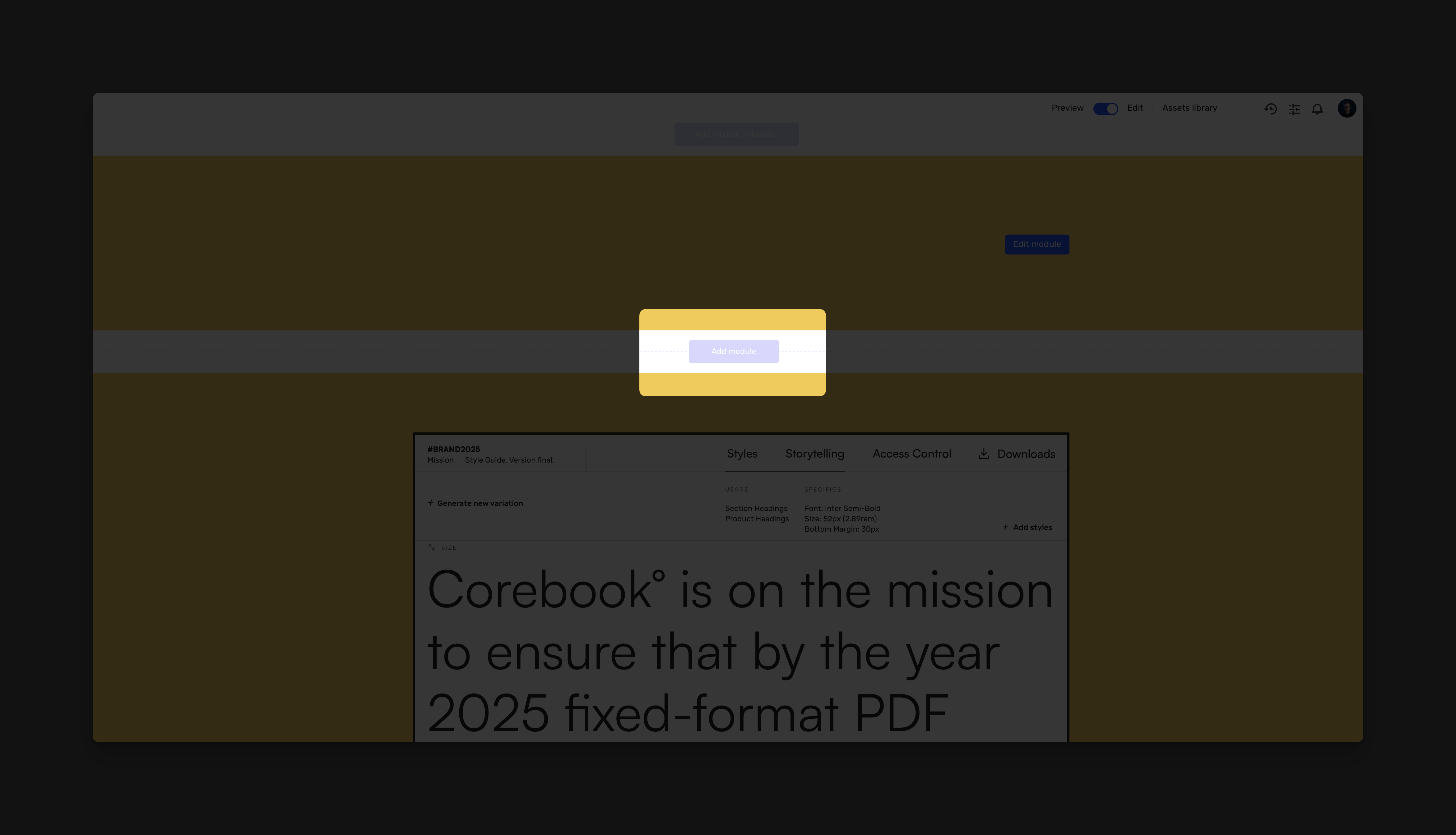 Corebook° is built on modules—drag-and-drop content blocks that structure your guidelines with flexibility and flow.