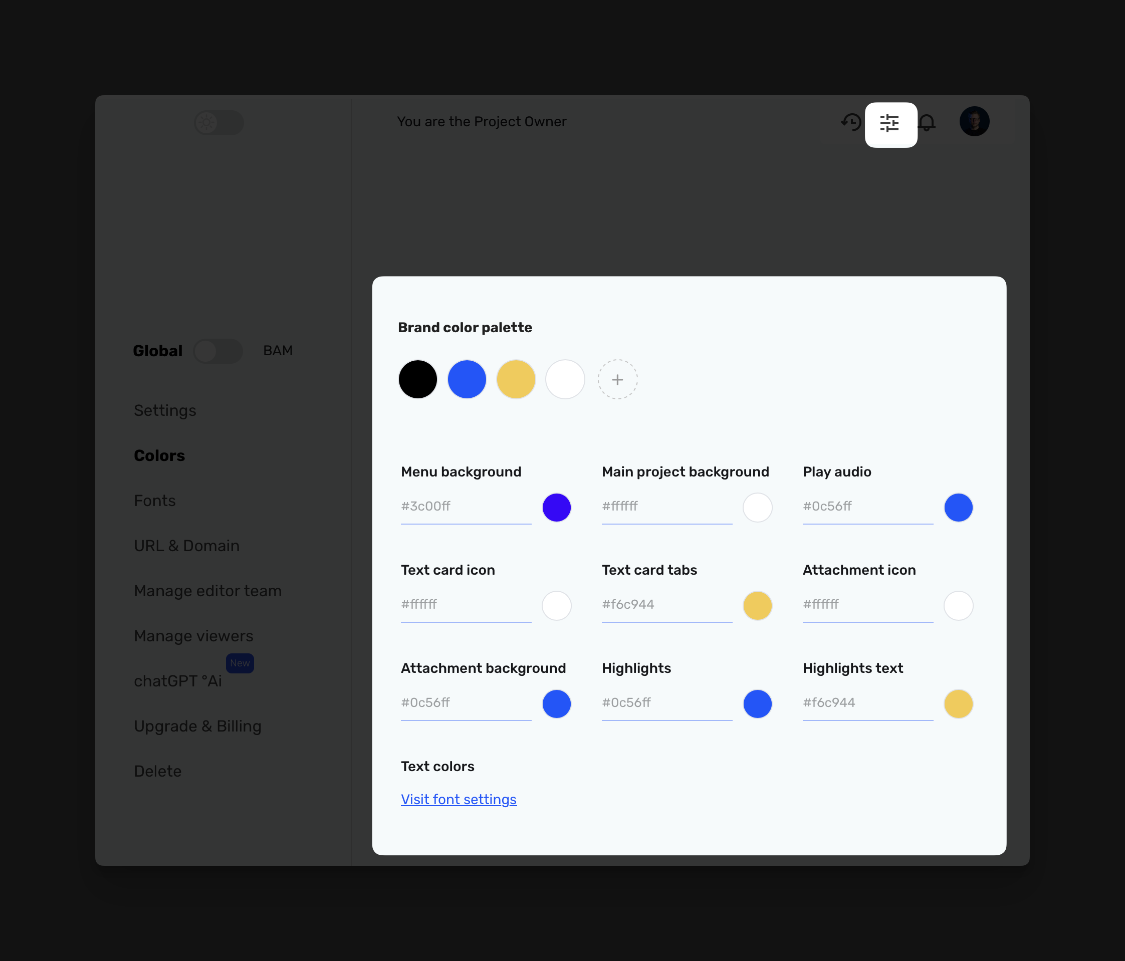 At the top, you’ll find your Brand Color Palette. Here, you can: