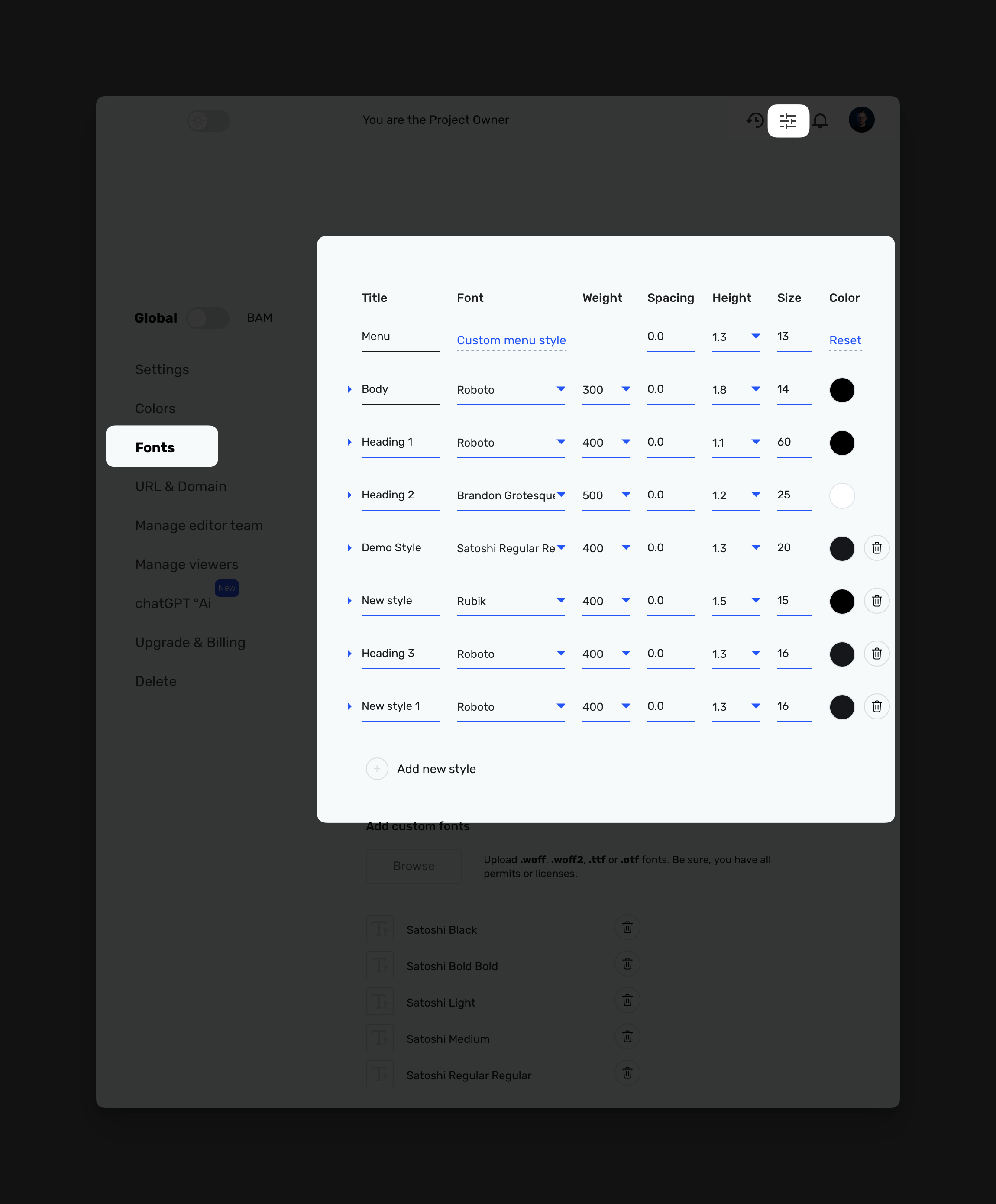 Bonus: If your team uses Adobe Fonts, paste a Typekit embed snippet right in the field provided.